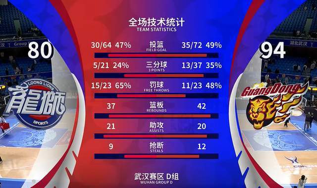 从数据来看,广东男篮明显打得更加出色,投篮命中率达到49%,三分球命中率更是达到35%。不过,罚球差点意思,23罚11中,命中率只有48%,还有很大的提升空间。