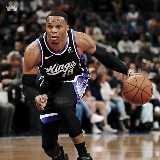 本场比赛,国王首发后卫威斯布鲁克出战40分17秒,16投10中得到24分13篮板14助攻2抢断1盖帽,三分球3中2,罚球4中2,出现了3次失误和2次犯规,正负值为-7,其中得分篮板和助攻都是全队最高。